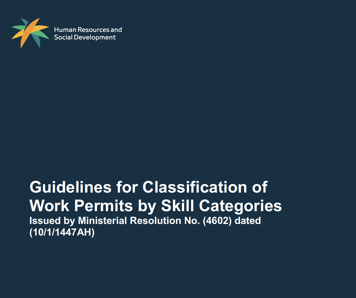 In this context, Ministerial Resolution No. (4602) dated (10/1/1447 AH) was issued regarding the classification of work permits by skill categories.